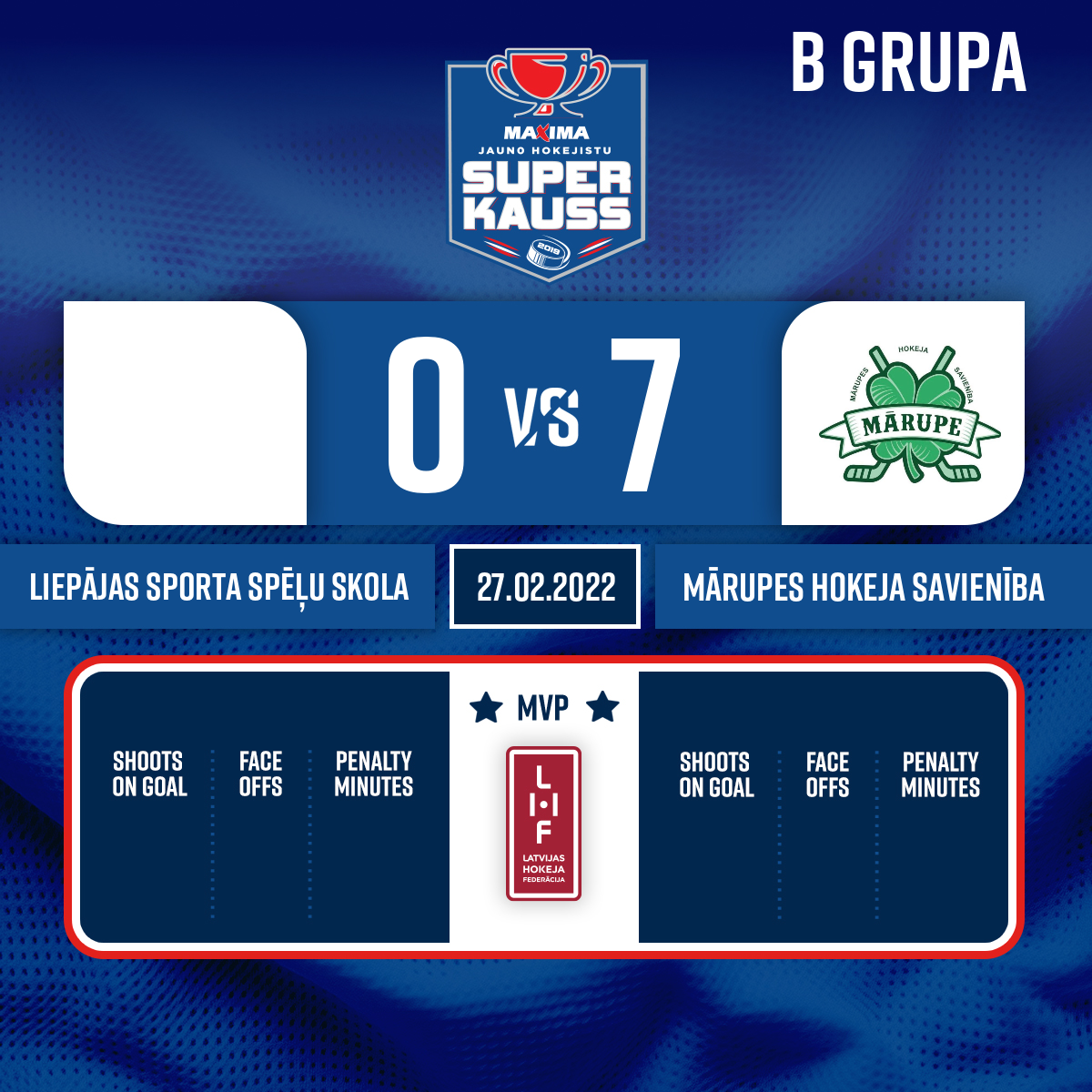 Vārti#7 Ernests LŪSĪTISPiespēle: #14 Rolands Rojs KRONBERGS - 20:062.PNoraidījums - 2 minūtesKlupināšana, #2 Emīls GRIGORJEVS