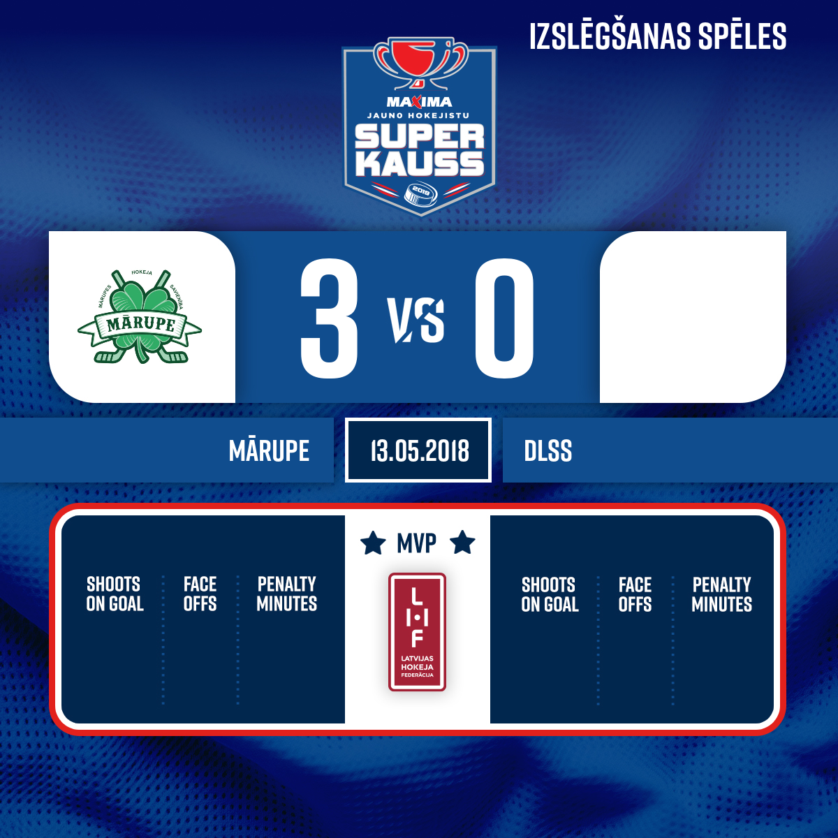 Piespēles: #19 Matīss BĪRIŅŠ#9 Uldis PŪPOLS3:044:14- 1. Periods