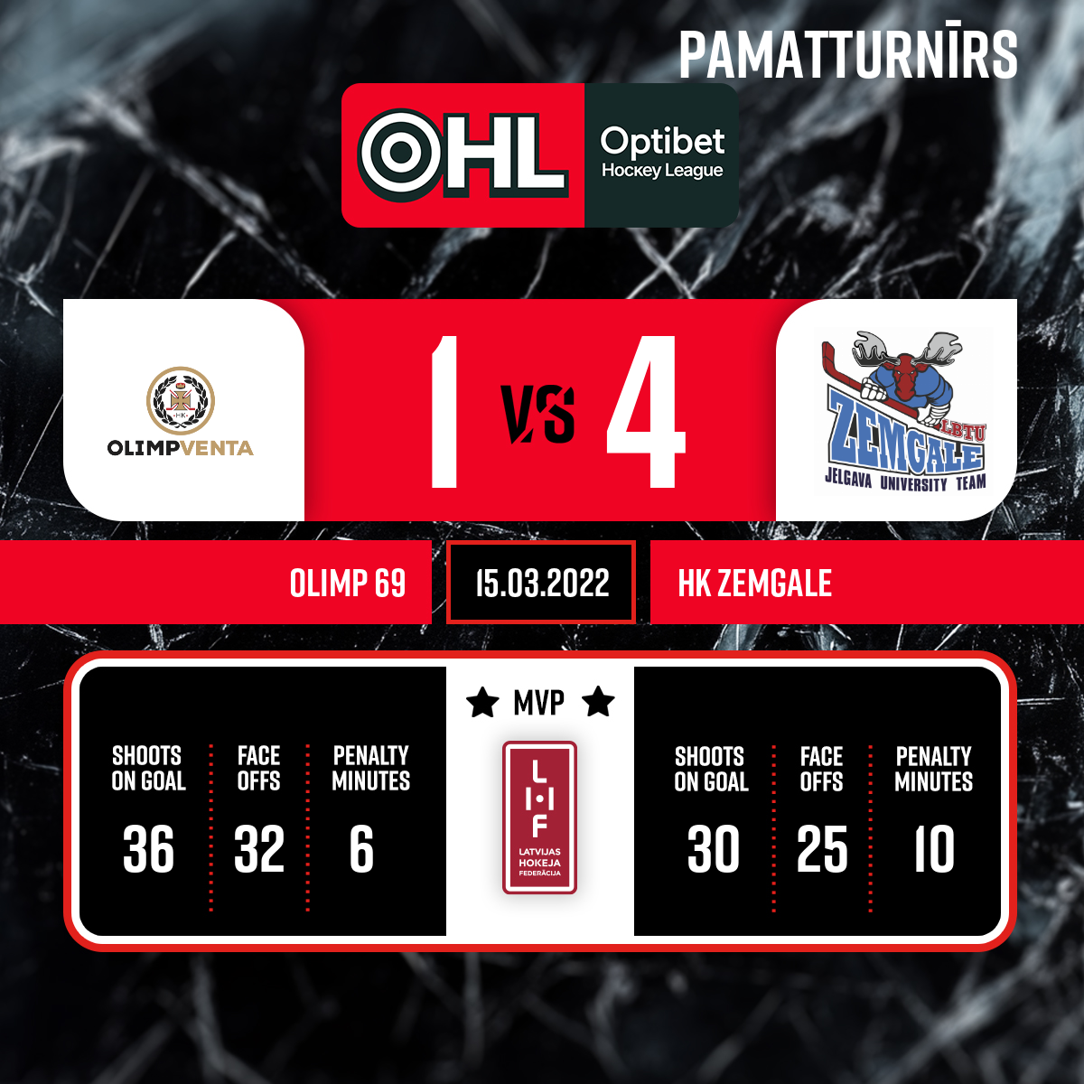 Noraidījums - 2 minūtesBīstama spēle ar augstu paceltu nūju, #47 Aleksis OSTAŅKEVIČS - 00:001.PSpēles tiesneši: galvenie tiesneši - Eduards Odiņš un Gints Zviedrītis; līnijtiesneši - Uldis Bušs un Dāvis Zunde Spēles inspektors - Anatolijs Kuzņecovs Spēles sākums Volvo Sporta centrā pulksten 19:00