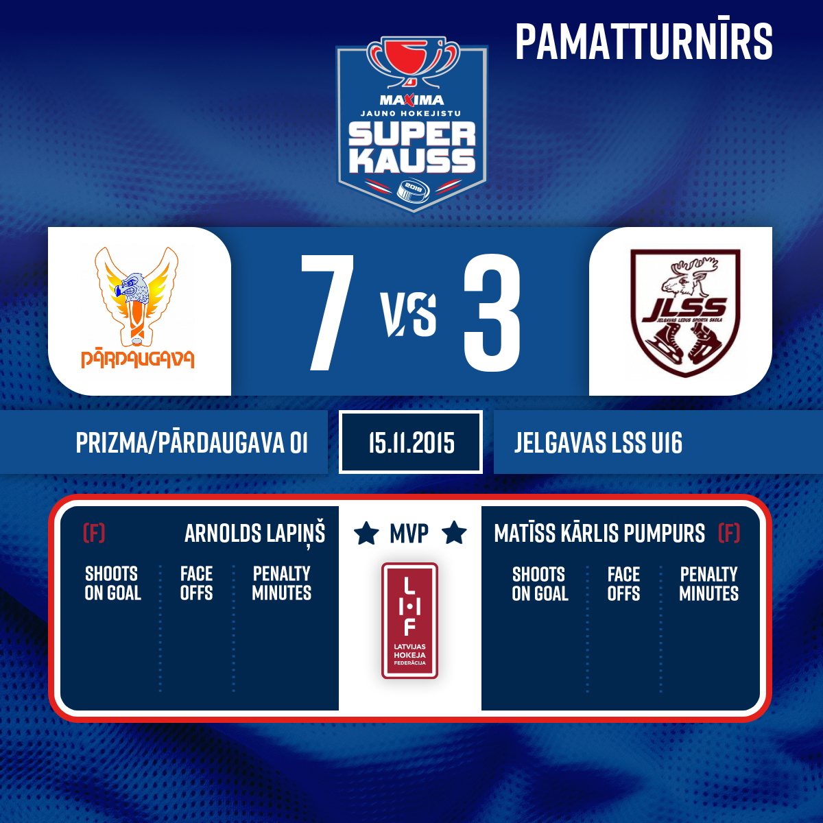Vārti#21 Matīss Kārlis PUMPURSPiespēle: #15 Daniels GORŠANOVS - 00:001.P