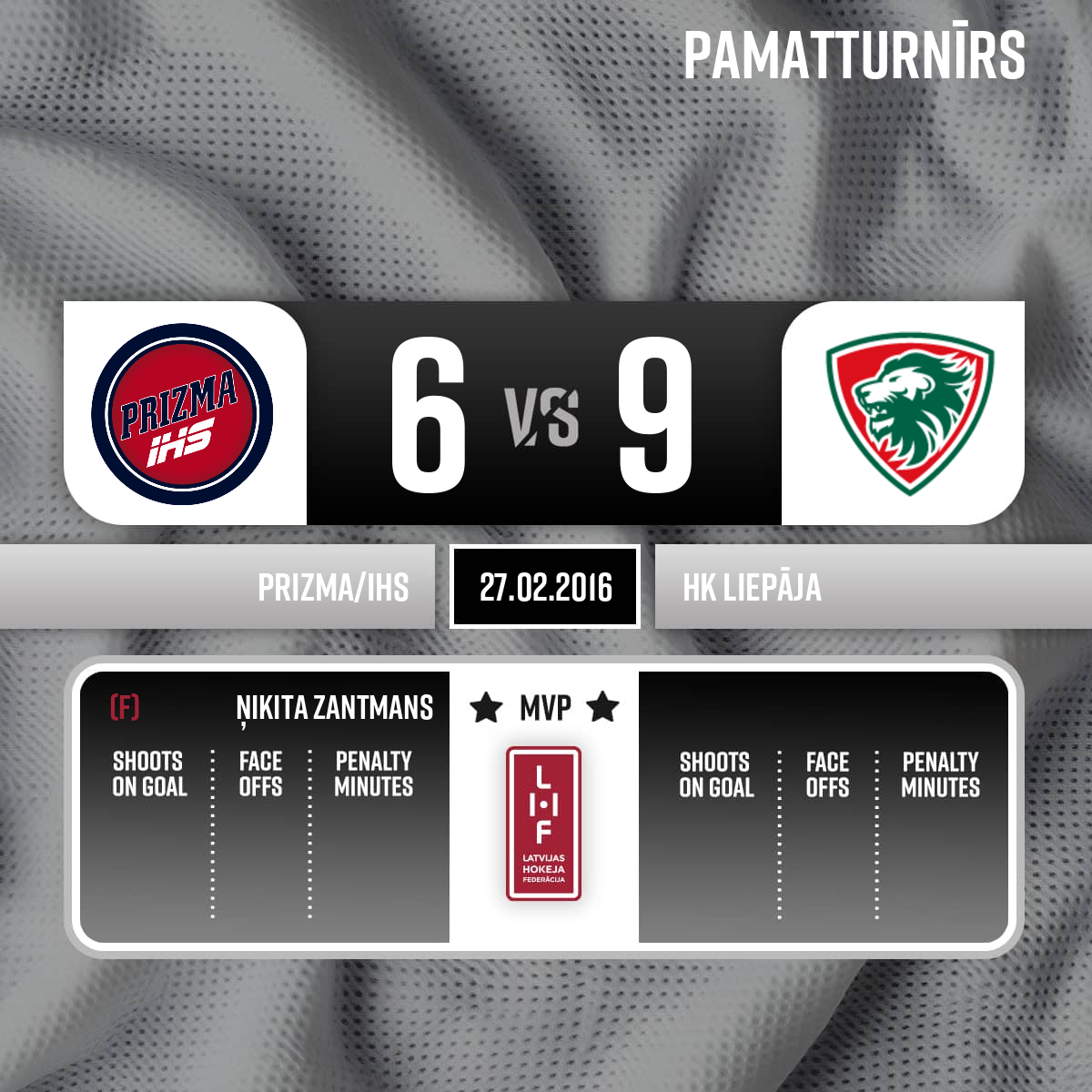 - 60:003.Pspēles labākie spēlētāji: HK Prizma #73 - Ņikita Zantmans HK Liepāja #8 - Guntis Pujāts