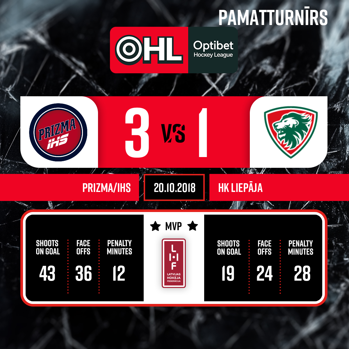 - 60:003.PSpēles labākie spēlētāji : HK Prizma komandā - Kristaps Liepa #74 HK Liepāja komandā - Kārlis Zakrevskis #30