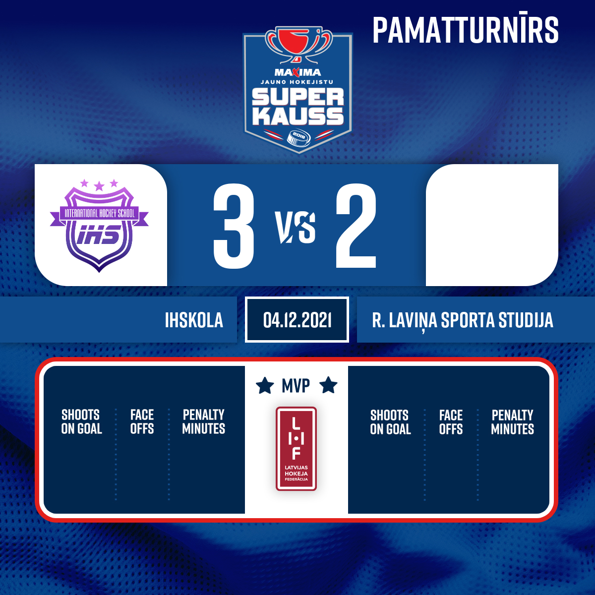 Pusminūtes pārtraukumsIHSkola - 56:453.PNoraidījums - 2 minūtesGrūdiens ar nūju rokās, #18 Reinis RAMANIS