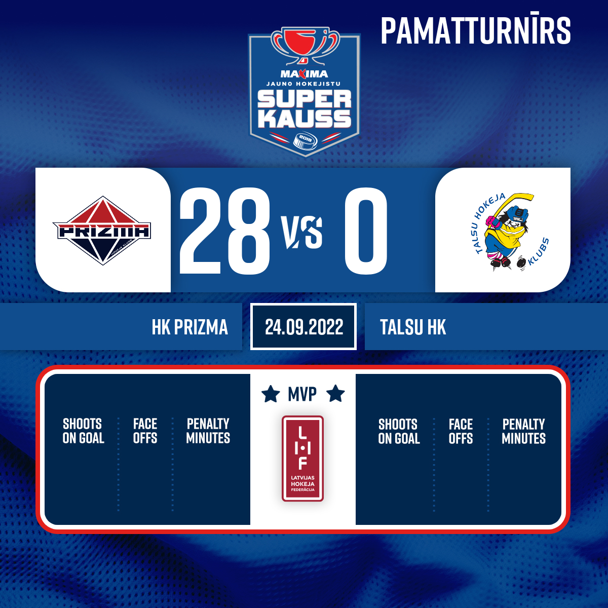Vārti#8 Deniss KUZMENKOPiespēle: #18 Markuss OĻEIŅIKOVS