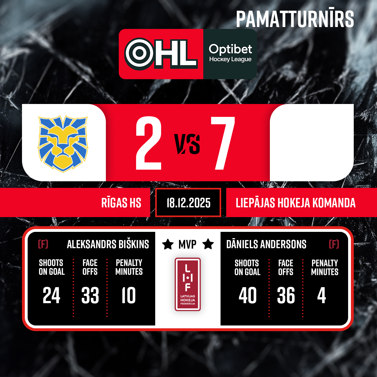 Vārti#13 Dāvids DAŅILOVSPiespēles: #24 Aleksandrs BIŠKINS, #7 Kristers OBUKS