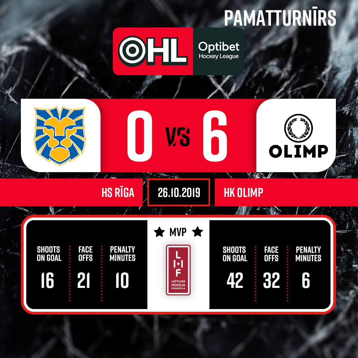 - 60:003.PLabākie spēlētāji: HS Rīga komandā - TUŽILKINS Roberts Nr. 13 HK Olimp komandā - KONIŠEVS Vladislavs Nr.72