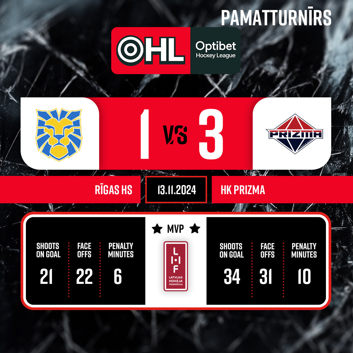 Piespēles: #4 Jānis Gustavs GLĀZNIEKS#21 Lenards Jānis SPRIESLIS1:353:33- 1. Periods