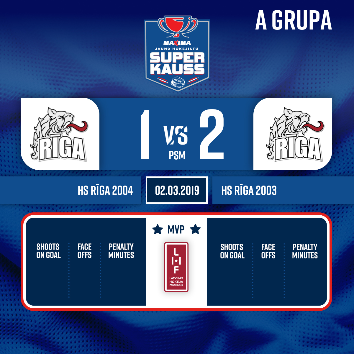 Noraidījums - 2 minūtesGrūdiens ar nūju rokās, #19 Mārtiņš ŠULCS - 00:001.P
