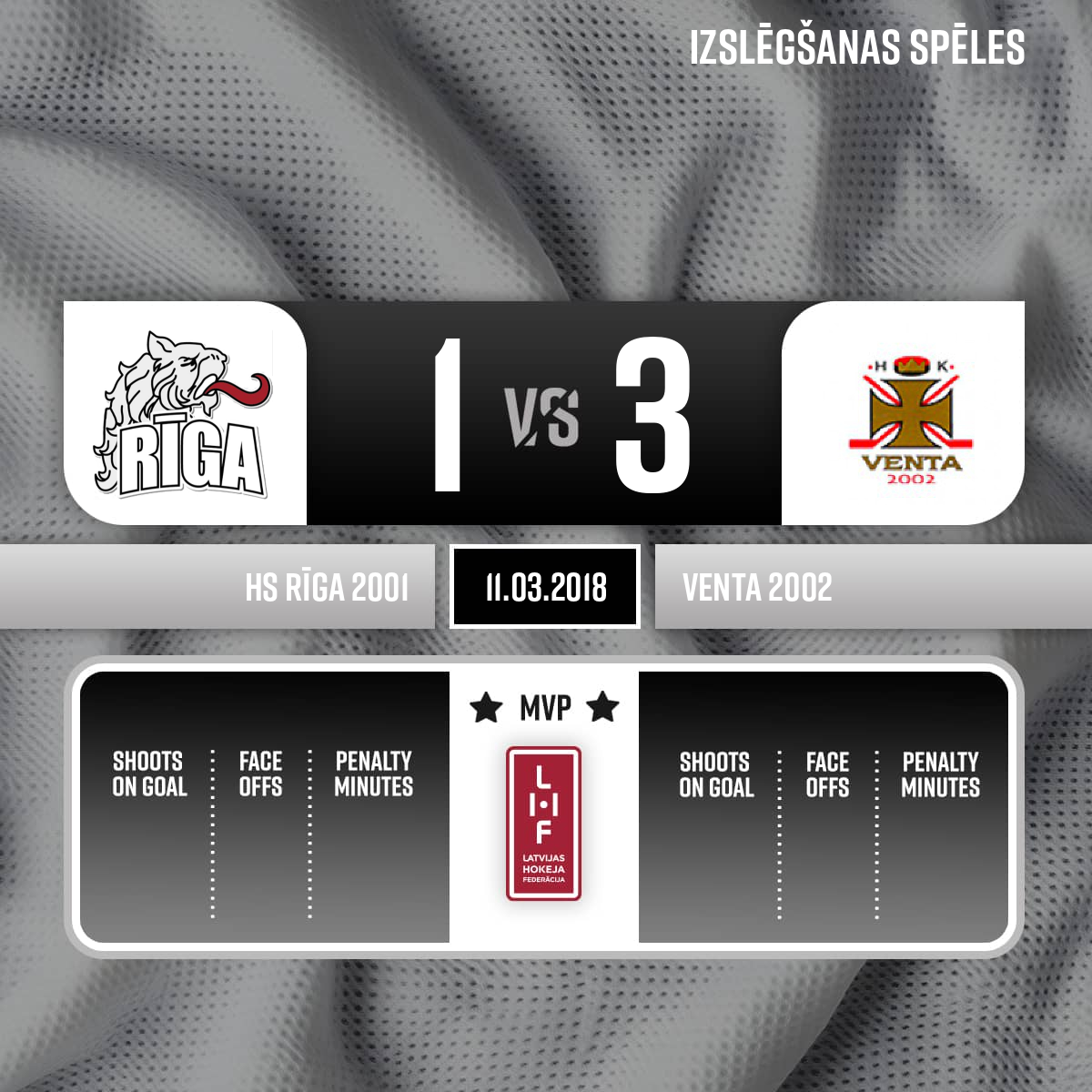 Noraidījums - 2 minūtesSitiens ar celi, #2 Artūrs BRIKMANIS - 00:001.PSpēles tiesneši: galvenais tiesnesis - Krišs KUPČUS, līnijtiesneši - Uldis BUŠS un Agris OZOLIŅŠ, spēles inspektors Ģirts ŪDRIS