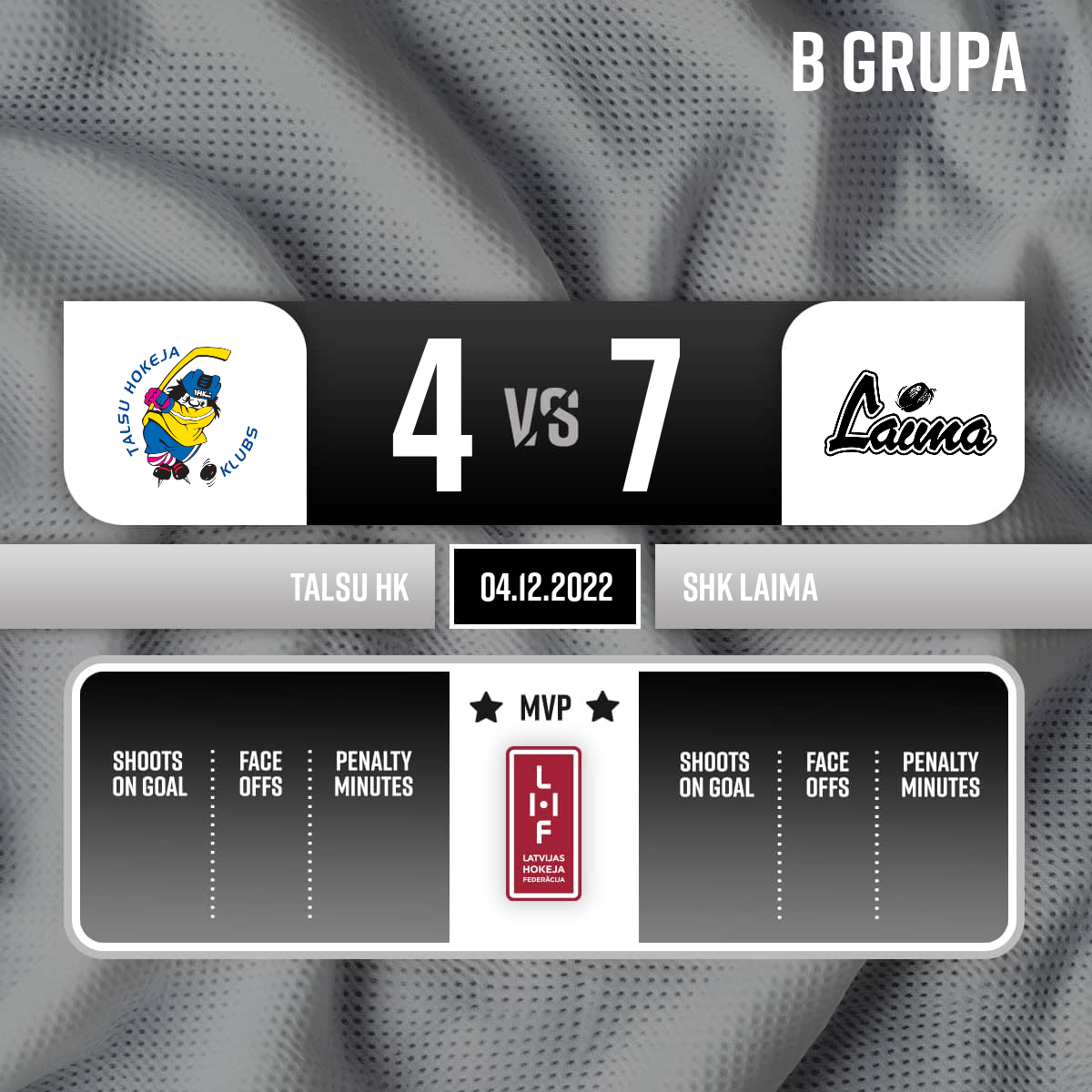 - 36:003.PLabākās spēlētājas: Best players: Talsu hokeja klubs — #9 Diāna Done Laima 2 — #33 Amēlija Senkāne