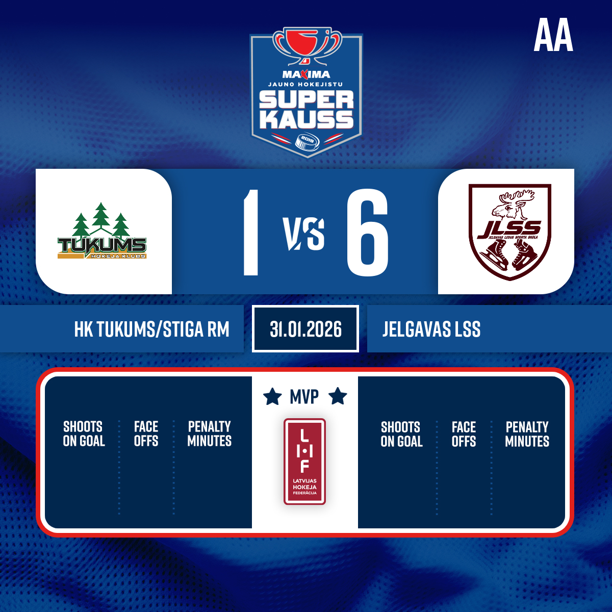 Piespēles: #21 Miķelis GOLUBOVIČS#7 Krišjānis LIPARTS0:226:15- 1. Periods