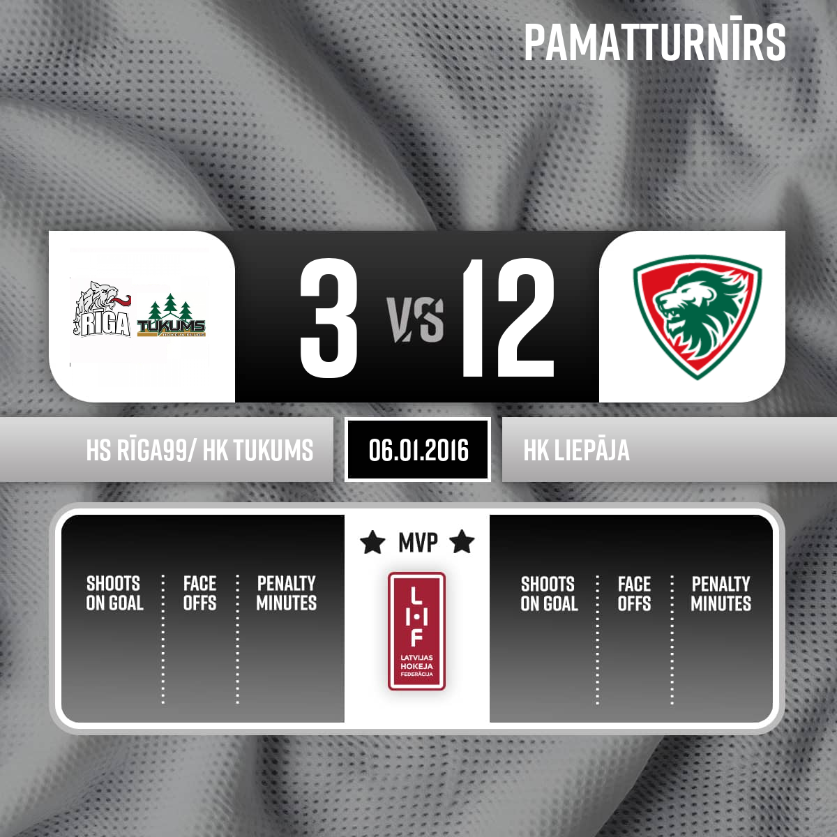Vārti#24 Iļja MAKAROVSPiespēles: #53 Kristers FREIBERGS, #17 Dmitrijs KORŅILOVS - 00:001.PTiesneši: Galvenais tiesnesis- Kupčus Krišs Līnijtiesneši- Vasiļjevs Ģirts, Bumbieris Aigars