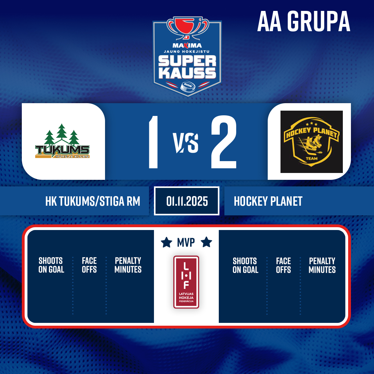 Noraidījums - 2 minūtesGrūšana uz apmali, #13 Artūrs SARMULISSodu izcieš: #6 Marks SIKORA - 30:213.P