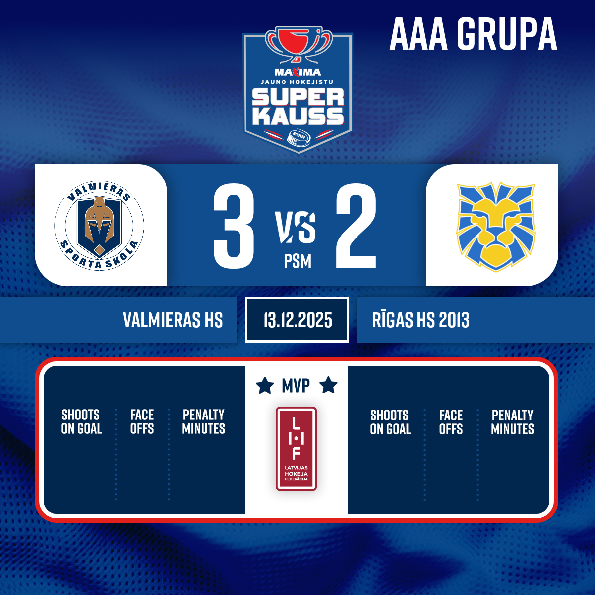 Vārti#13 Olafs GRINBERGSPiespēles: #20 Olivers KANAŠNIEKS, #1 Edvards CAPS - 30:00 3. perioda sākums