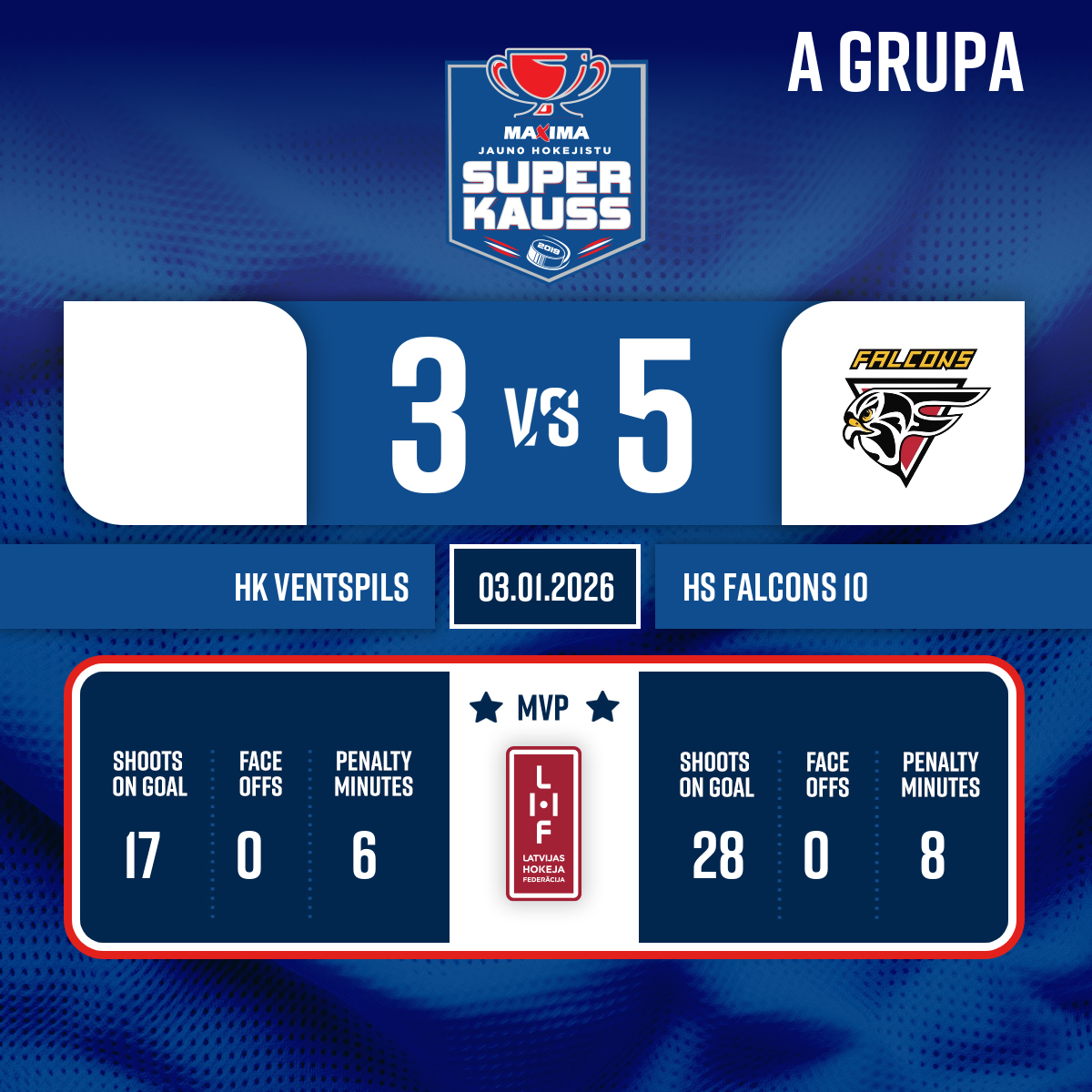 Vārti#5 Markuss MEGRISPiespēles: #7 Germans DEMBO, #9 Ņikita VENGERS - 00:001.P