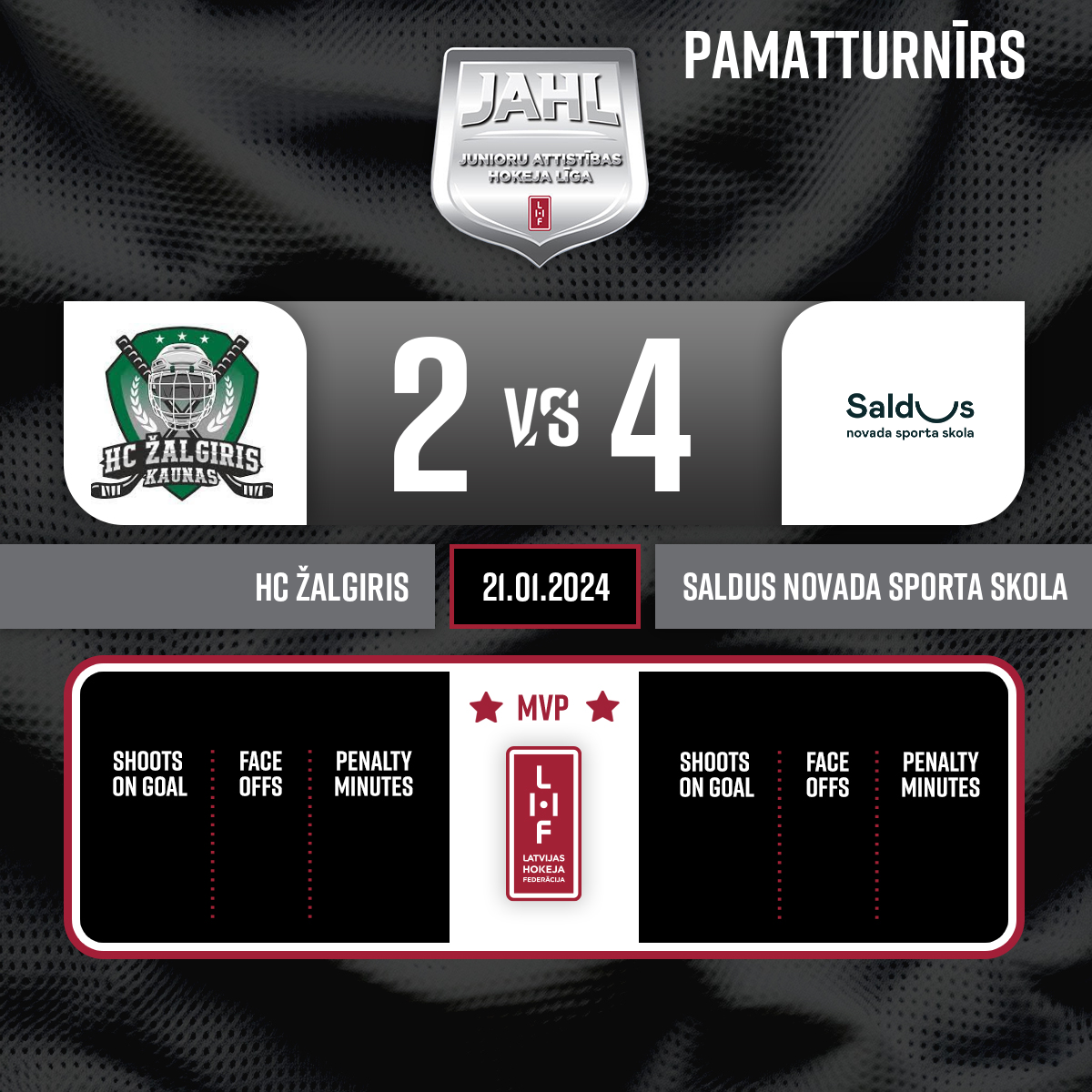 Vārti#87 Dominykas BORAVSKIPiespēles: #77 Kajus ZEYNALOV, #90 Mykolas KUBILIUS - 00:001.P