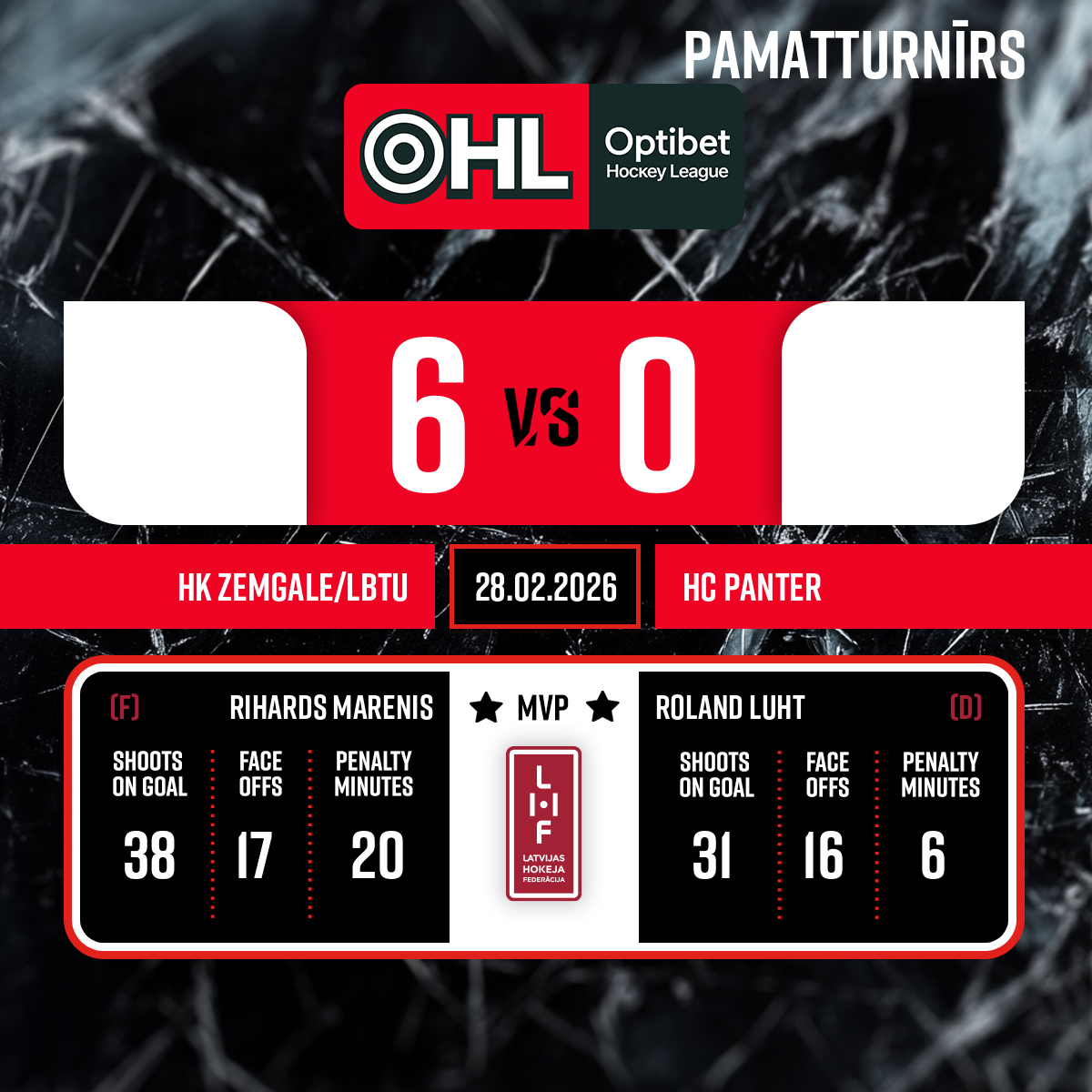 Vārti#29 Rihards MARENISPiespēles: #8 Patriks ZABUSOVS, #25 Toms LINDBERGS
