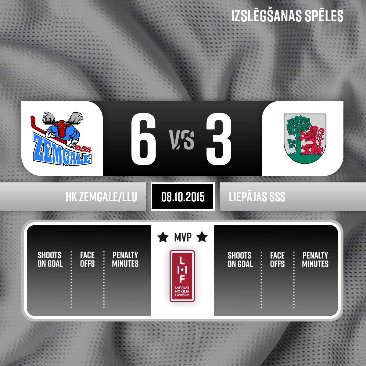 Vārti#12 Juris ZIEMIŅŠPiespēle: #77 Olafs APLOKS - 00:001.PGalvenais tiesnesis: Krišs Kupčus Līnijtiesneši: Ģirts Vasīļjevs un Aigars Bumbieris