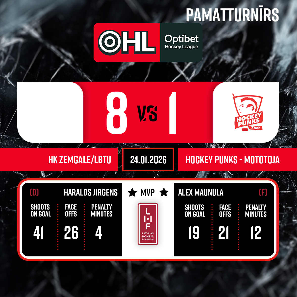 Vārti#29 Rihards MARENISPiespēles: #7 Haralds JIRGENS, #27 Joonas PARVIAINEN - 24:222.P