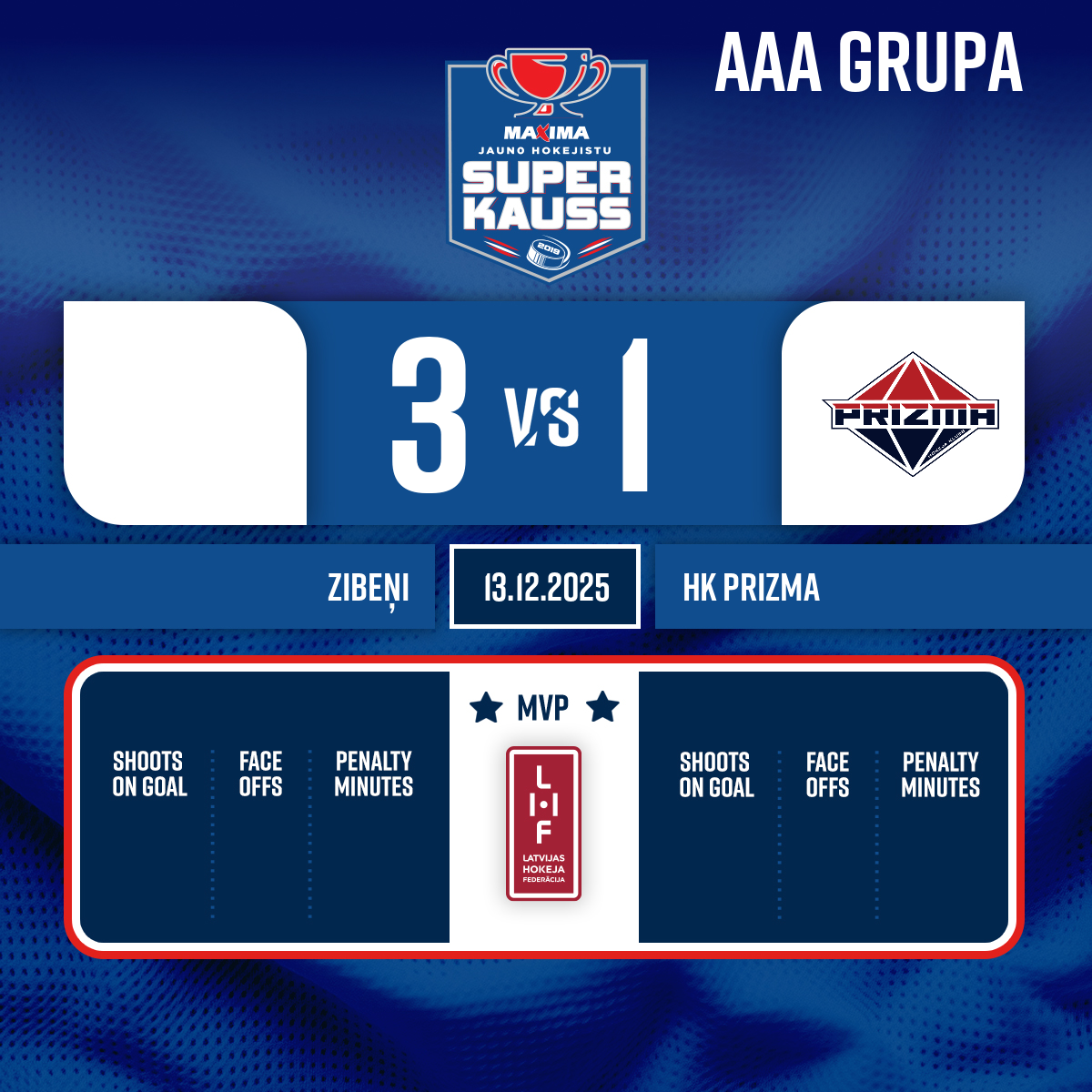 Vārti#12 Gustavs VALERSPiespēle: #9 Leonels BLUMBERGS - 30:00 3. perioda sākums