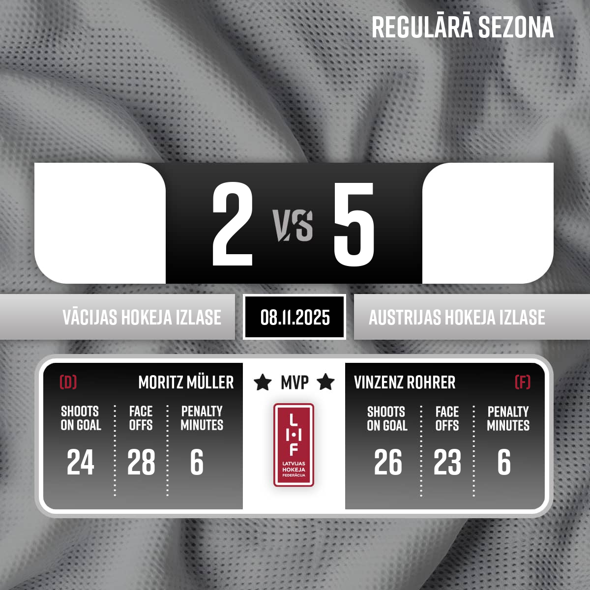 Vārti#7 Leon WALLNERPiespēle: #19 Vinzenz ROHRER - 40:00 3. perioda sākums