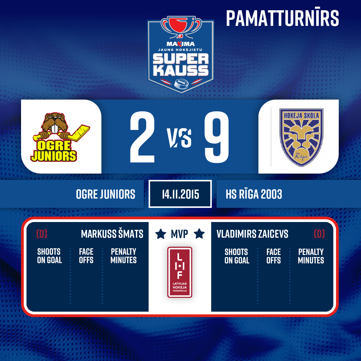 Spēles labākie spēlētāji: Ogre juniors #4 Markuss Šmats HS Rīga 2003 #22 Vladimirs Zaicevs