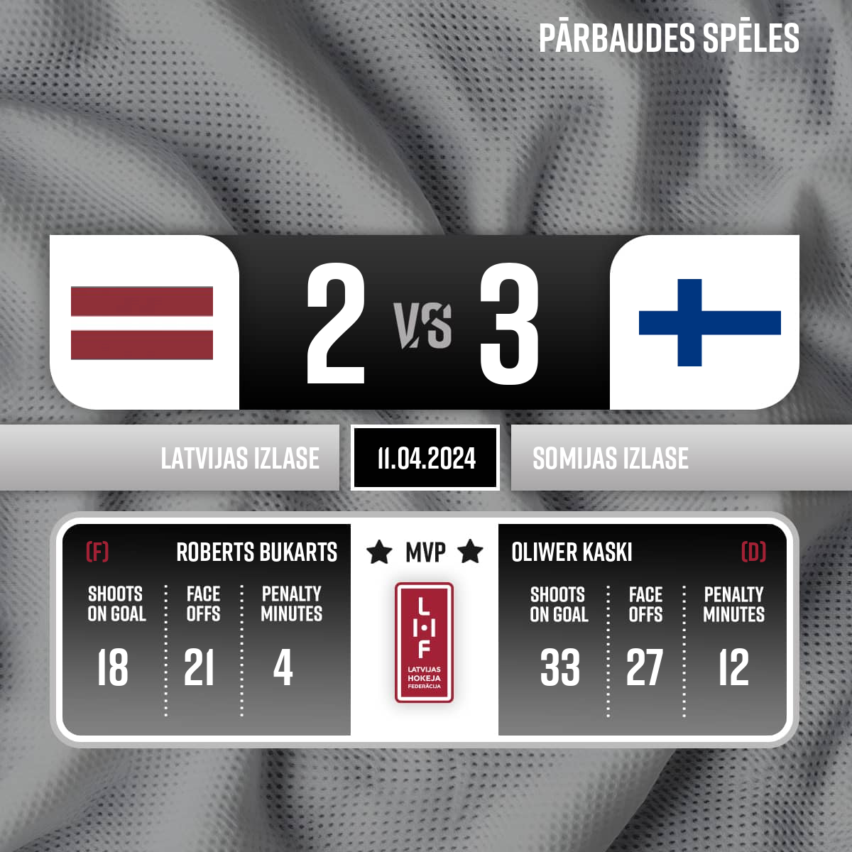 - 60:003.PThe best palyers of the game: For team Latvia No. 71 BUKARTS Roberts For team Finland No. 7 KASKI Oliver