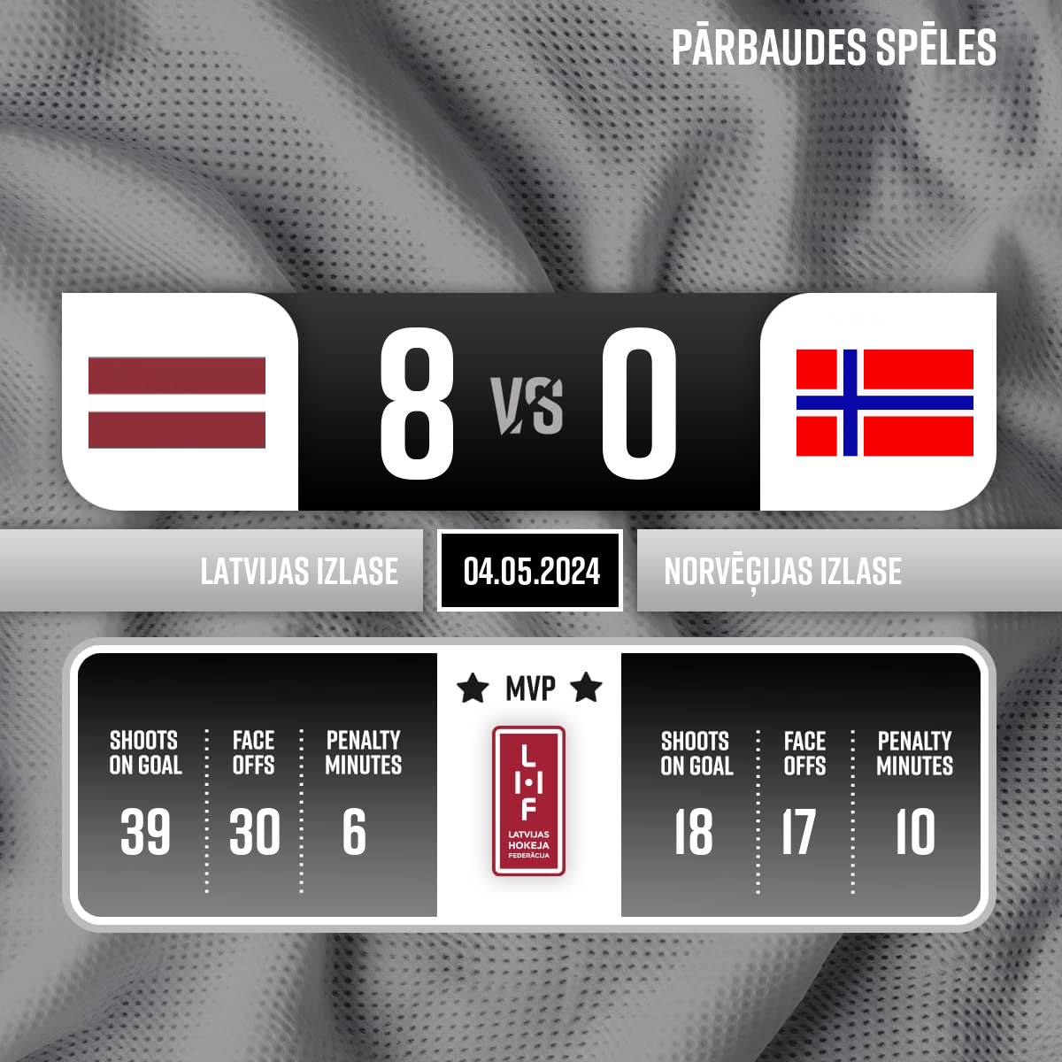 - 60:003.PThe best payer of the game: Team Latvia- No. 17 DZIERKALS Mārtiņš Team Norway- No. 19 SALSTEN Havard