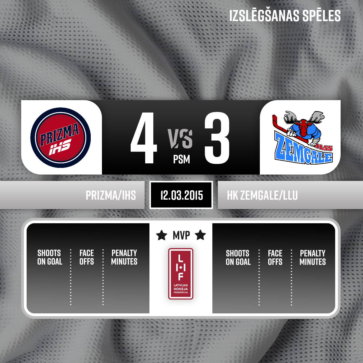 - 70:00PLŠīs dienas spēles labākie spēlētāji: HS Rīga Prizma - #93 Bruno Priede HK Zemgale LLU - #1 Toms Konrāds