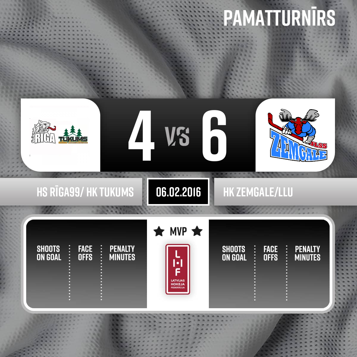 Vārti#16 Ralfs VJATERS - 00:001.PLabvakar! Spēli tiesā: Galvenais tiesnesis - Armands Bedrītis; Līnijtiesneši - Andrejs Jakovļevs, Gatis Everts.