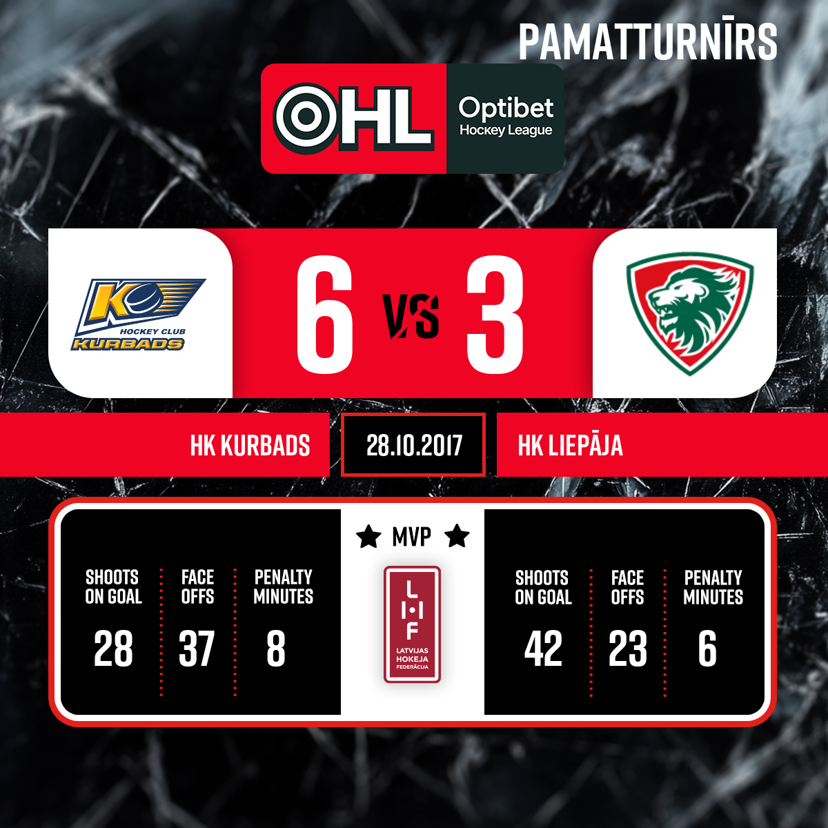 Labākie spēlētāji: HK Kurbads - #13 Jānis SPRUKTS HK Liepāja/Optibet - #5 Mārtiņš Oskars FREIMANIS