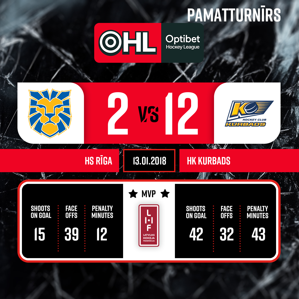 spēles labākie spēlētāji: HS Rīga - Bruno Bakanovs #12 HK Kurbads - Toms Zeltiņš #71