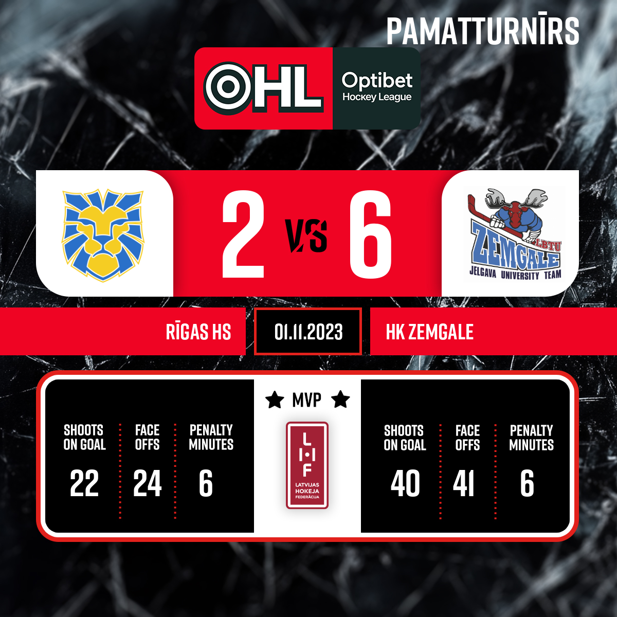 Spēles labākie spēlētāji- HS Rīga – Nr 10 DIĻEVKA Dmitrijs HK Zemgale/LLU- Nr 33 ANDERSONS Dāniels