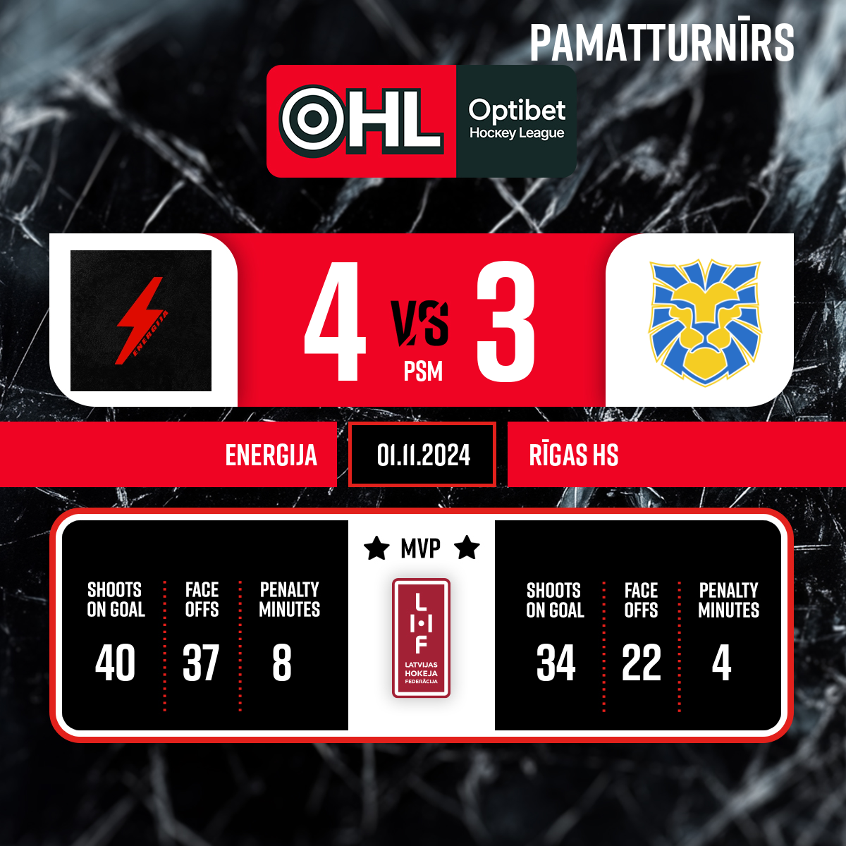 2024. gada 1. novembris, 19:30Elektrenai ice arena