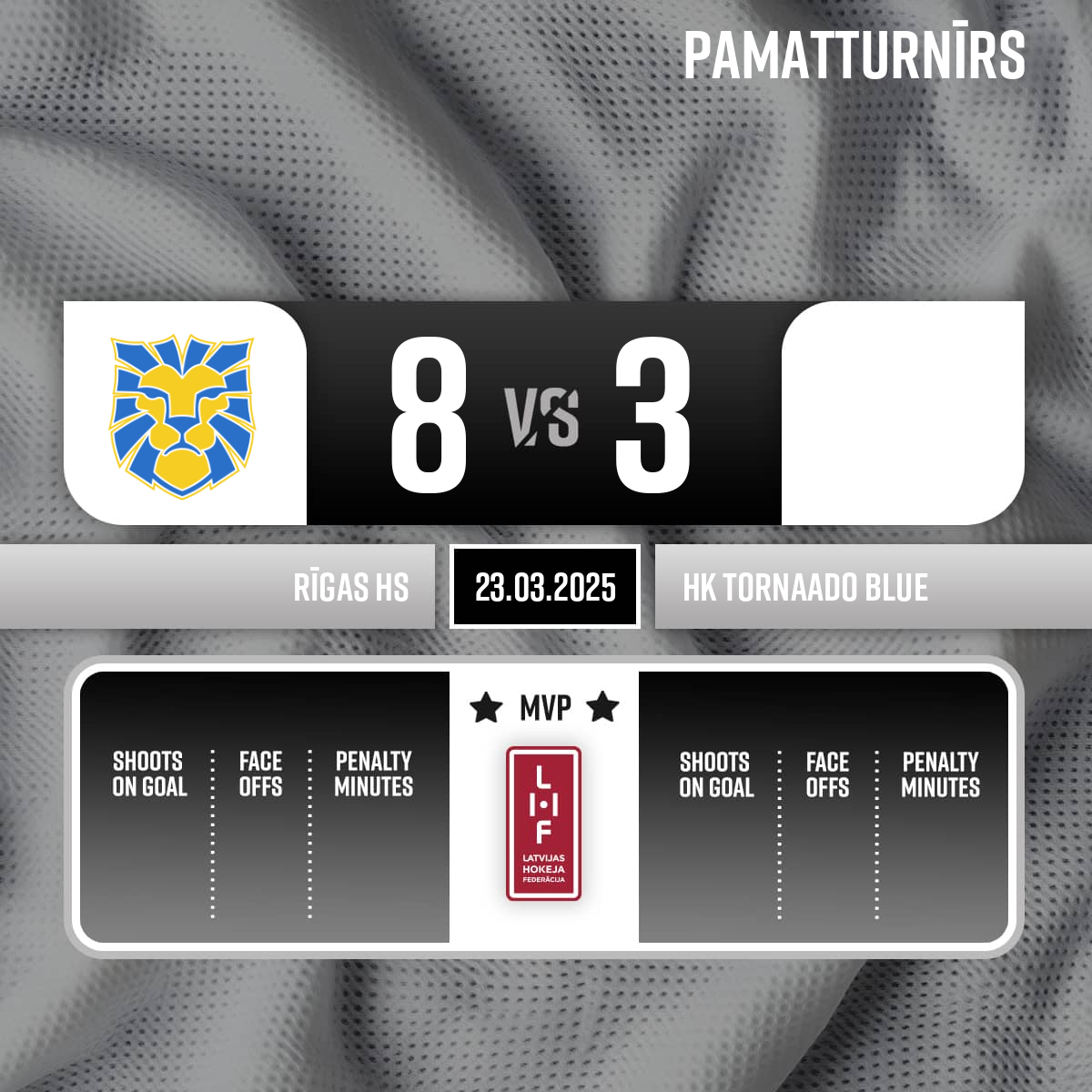 Vārti#34 Alberts PURIŅŠPiespēle: #64 Mārtiņš GAIDULIS - 35:492.PPusminūtes pārtraukumsHK Tornaado Blue
